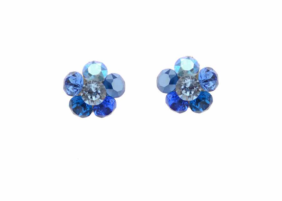 Cercei floare realizati din 6 cristale Swarovski in nuante de albastru : Sapphire, Majestic Blue, Capri Blue, Royal Blue, Light Sapphire Shimmer, Light Sapphire. Fiecare cristal are dimensiunea de 6 mm, astfel incat diametrul florii este de aprox. 16 mm. O pereche de cercei mare, care acopera urechea, disponibila in 3 variante: pe lobul urechii, tortita leverback scurta(se inchide la spate printr-un simplu click) si tortita leverback lunga (se inchide la spate cu un singur click). In realitate cristale Swarovski sunt mult mai stralucitoare decat in poze, iar nuantele pot sa difere putin.