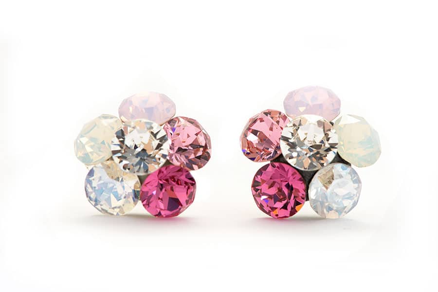 Cerceii din argint cu pietre Swarovski sunt realizati din 6 cristale Swarovski Xirius de 5mm in nuante de roz si alb.