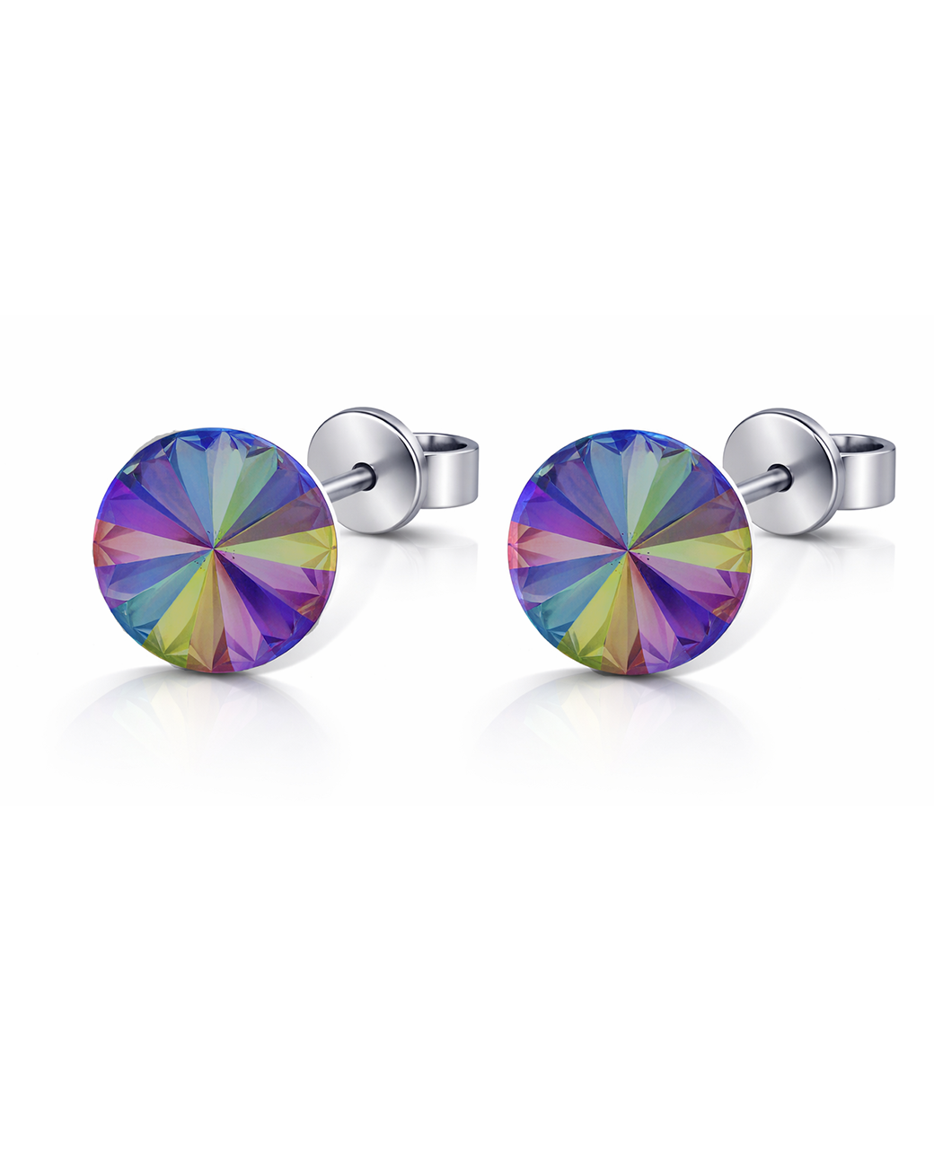 Cerceii Cristalia Rivoli sunt realizati din argint 925 si sunt decorati cu 2 cristale Swarovski Paradise Shine (multicolori), au dimensiunea de 12 mm, iar sistemul de inchidere este tip surub cu fluturasi argint 925.