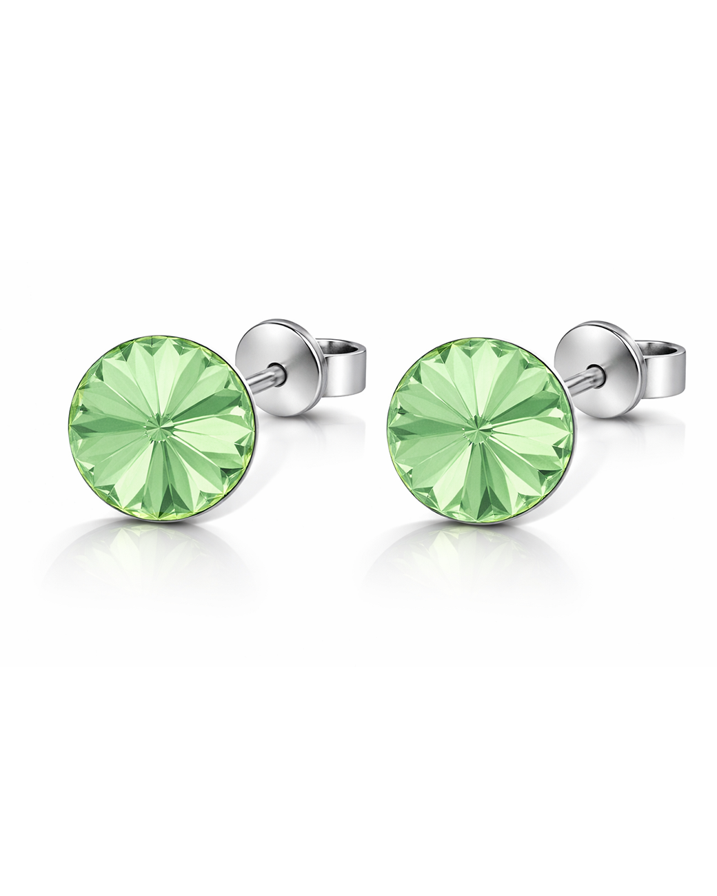 Cerceii Cristalia Rivoli sunt realizati din argint 925 si sunt decorati cu 2 cristale Swarovski Chrysolite (verde deschis) , au dimensiunea de 12 mm, iar sistemul de inchidere este tip surub cu fluturasi argint 925.