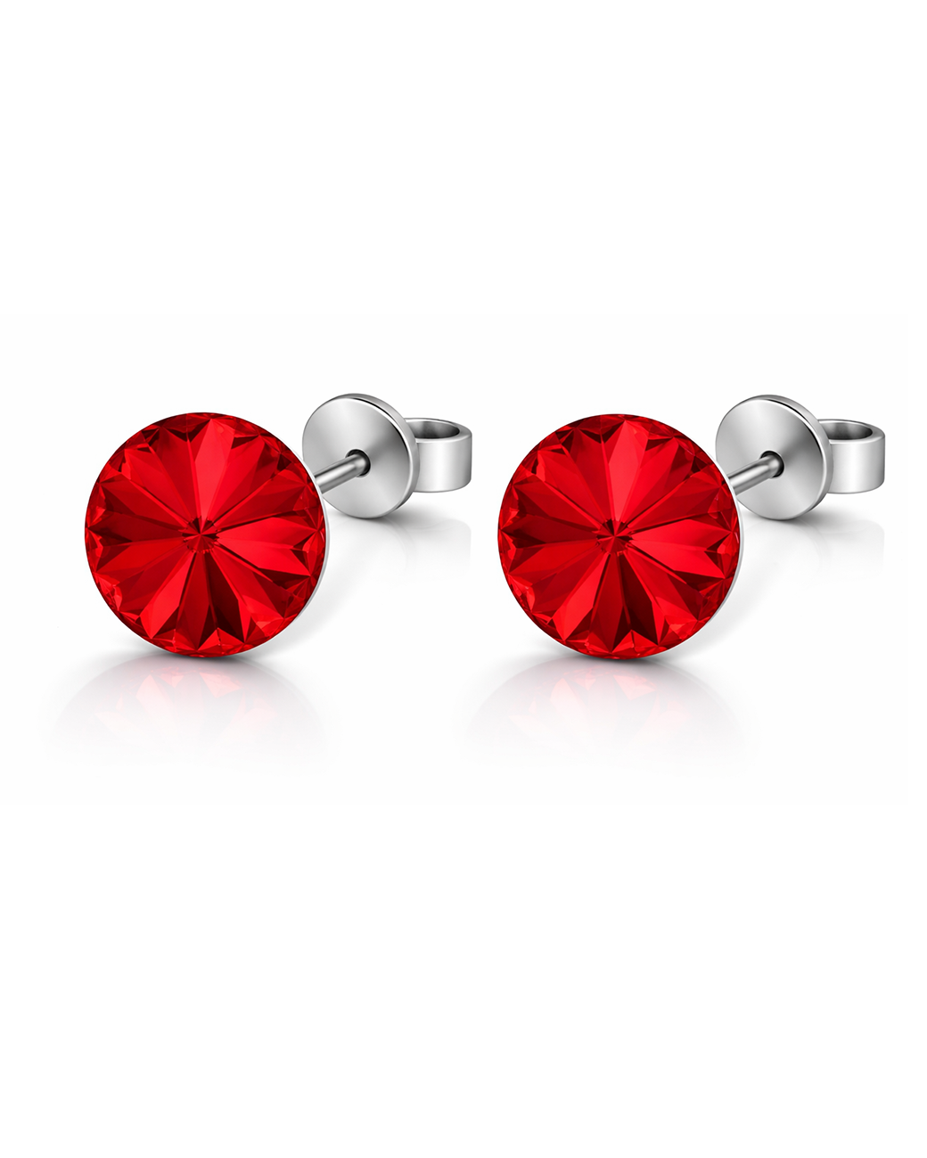 Cerceii Cristalia Rivoli sunt realizati din argint 925 si sunt decorati cu 2 cristale Swarovski Light Siam (rosu stralucitor) , au dimensiunea de 8 mm, iar sistemul de inchidere este tip surub cu fluturasi argint 925.