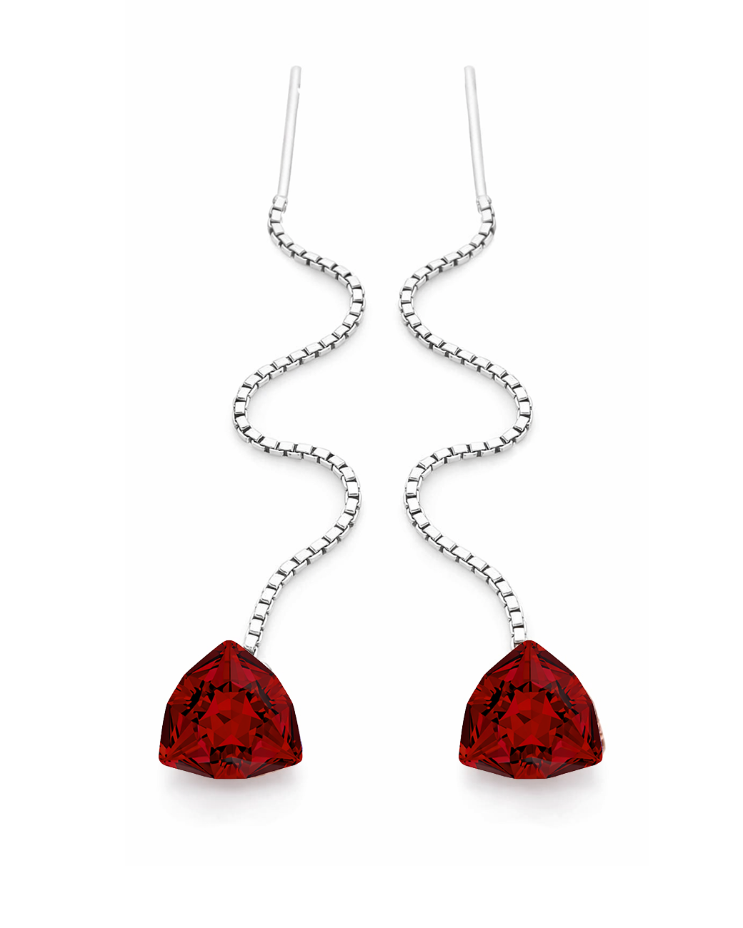 Incrustati cu 2 cristale Swarovski de 7 mm de culoarea rosie, cu taietura trilliant (in forma de triunghi) ,cu o forma dinamica , numeroasele sale fatete se ridica formand o suprafata plana de sus ,creand modele opulente de stralucire.