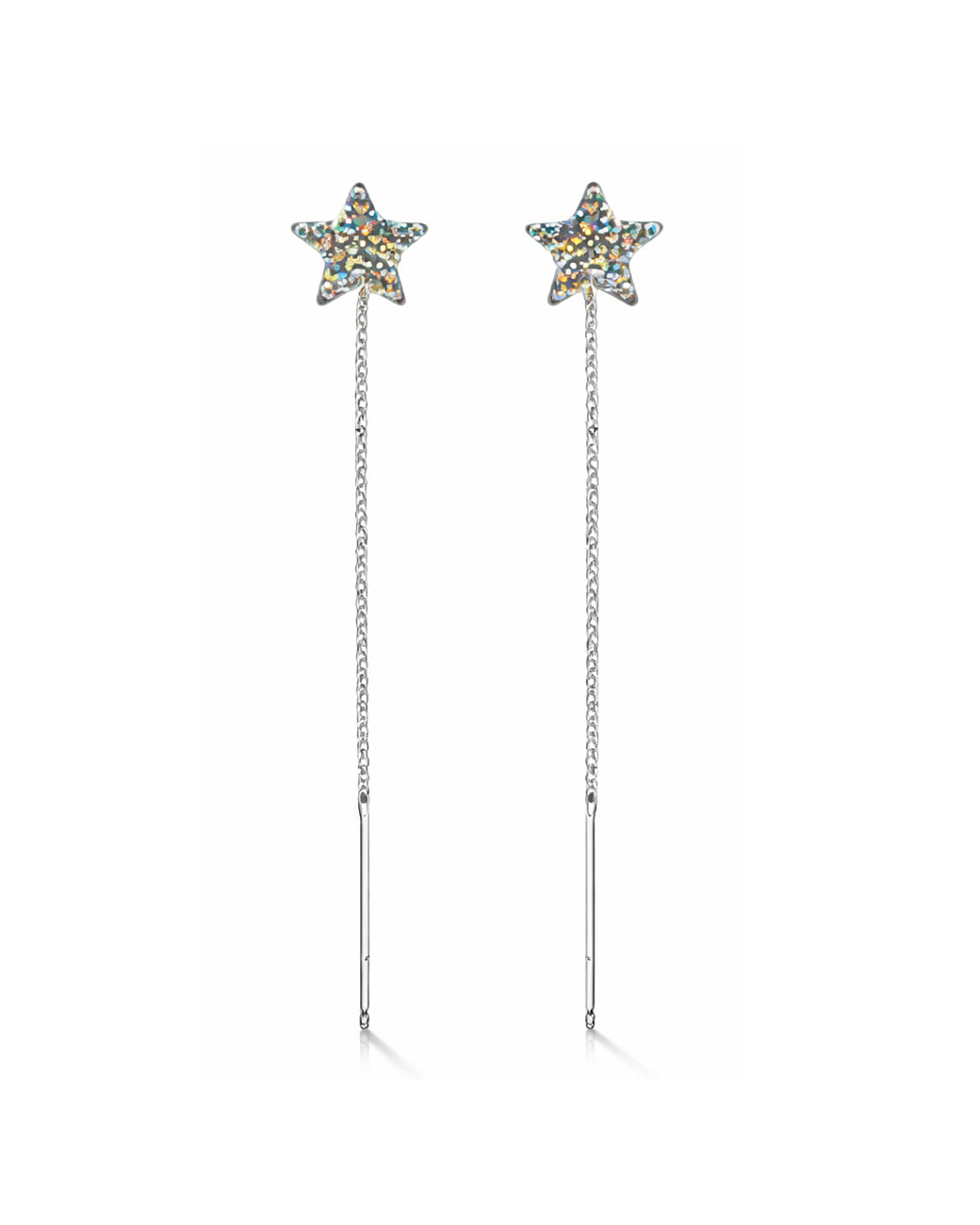 Cercei fir lantisor argint 925 cu dimensiunea de 65 mm, si caseta din argint in forma de stea cu diamtrul de 10 mm .