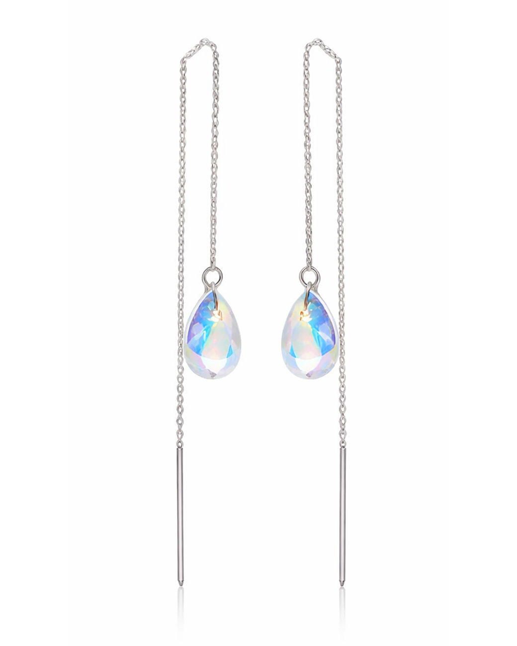 Cerceii sunt realizati cu cristale Swarovski Lacrima Aurora Borealis cu dimensiunea de 10 mm .