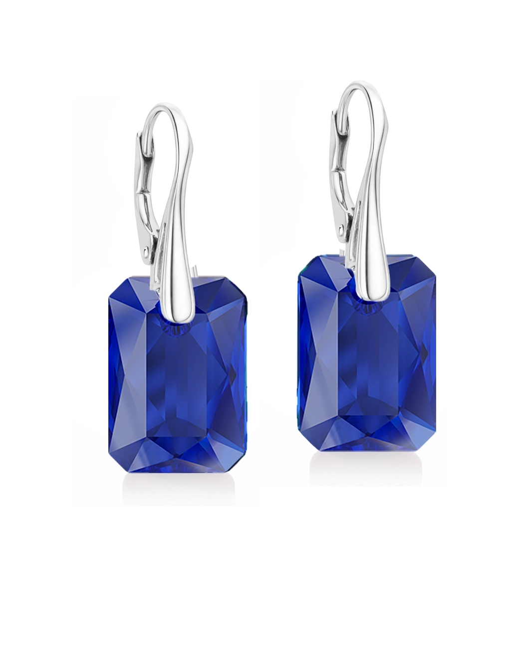 Adauga o stralucire subtila tinutei tale cu Cercei tortite leverback Emerald Cut Swarovski Crystal Sapphire 18 mm creata in atelierul Cristalia®.