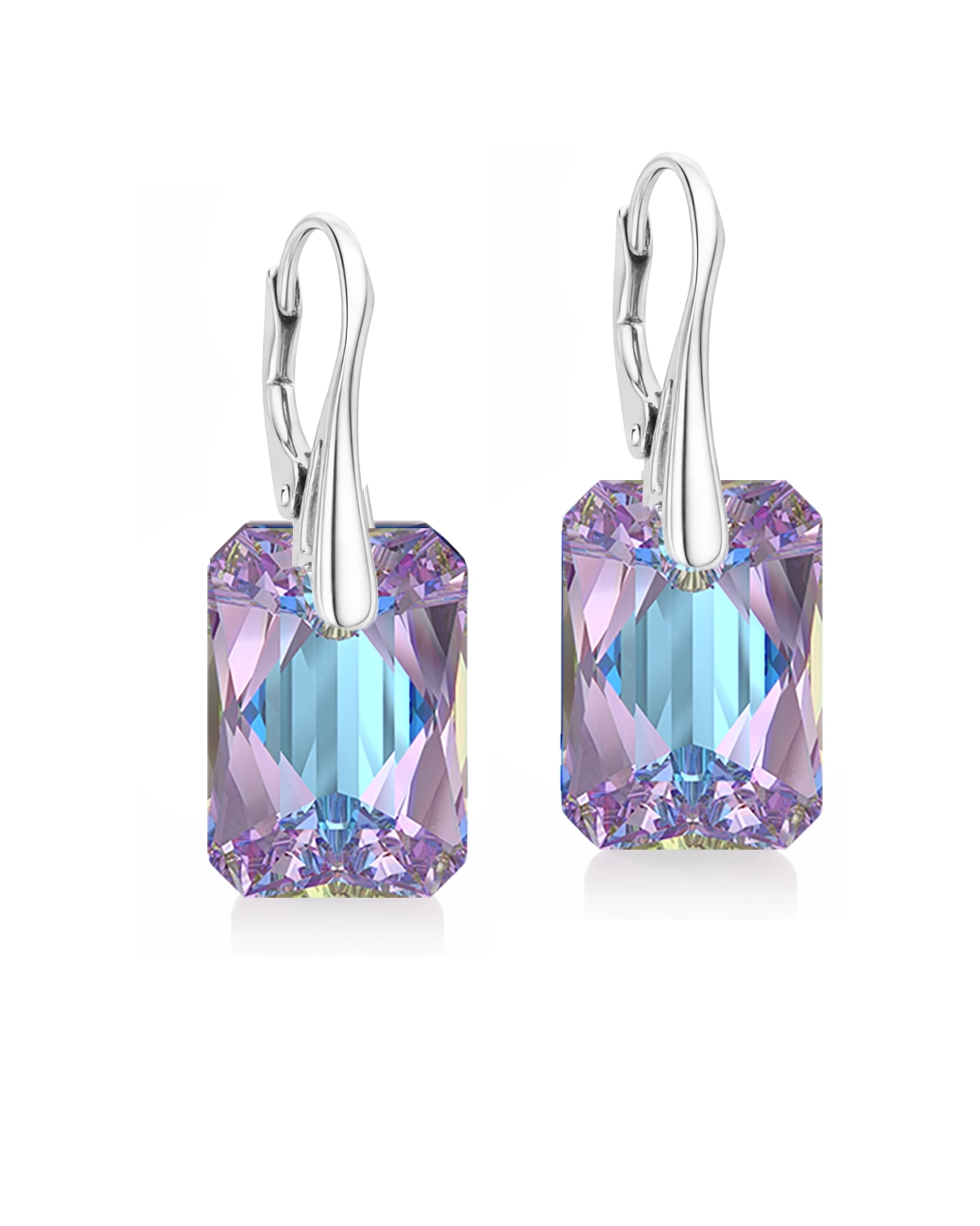 Adauga o stralucire subtila tinutei tale cu Cercei tortite leverback Emerald Cut Swarovski Crystal Vitrail Light 18 mm creata in atelierul Cristalia®.