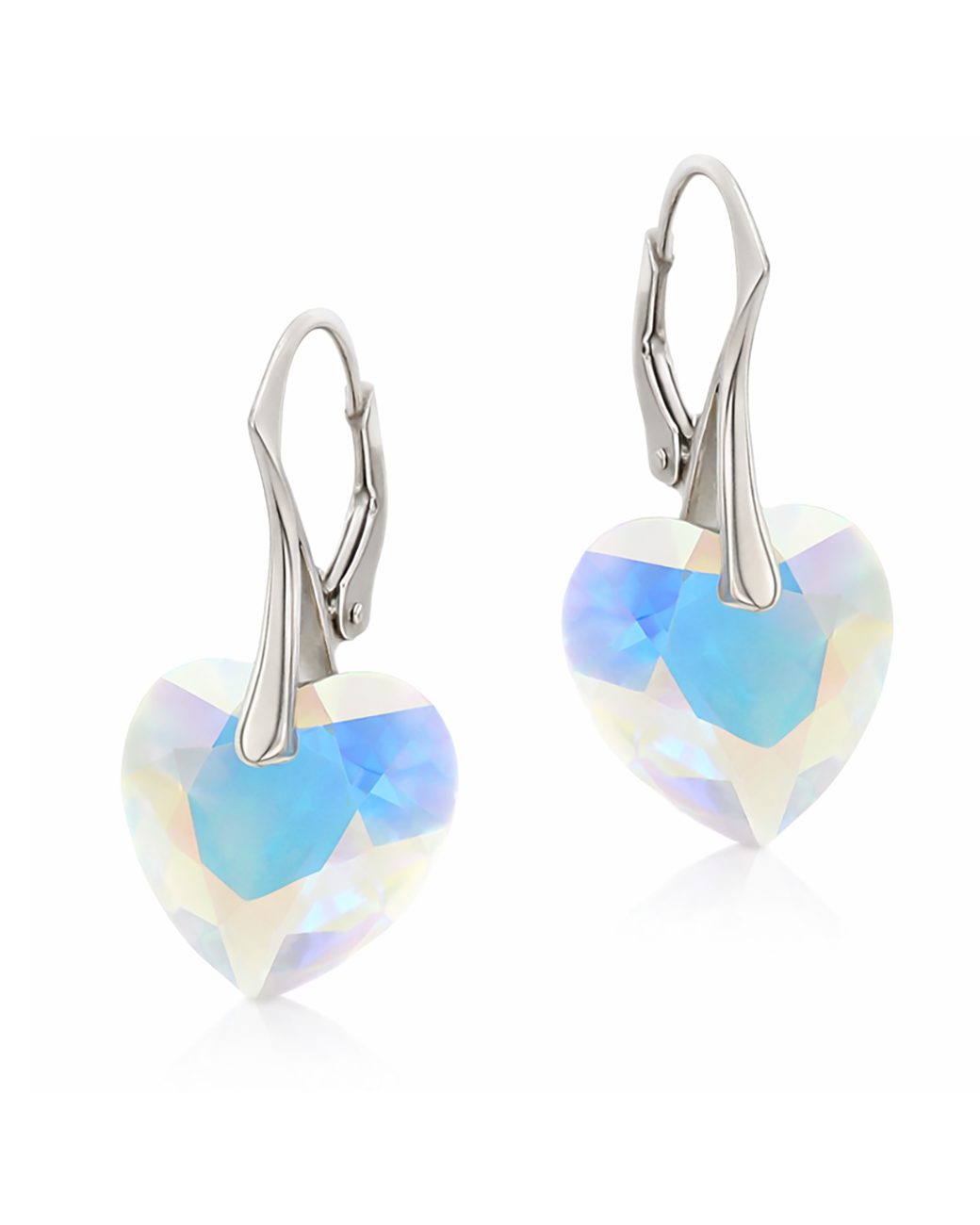 Adauga o stralucire subtila tinutei tale cu Cercei tortite leverback Inima Multifatetata Cristal Aurora Borealis 14.5 mm.