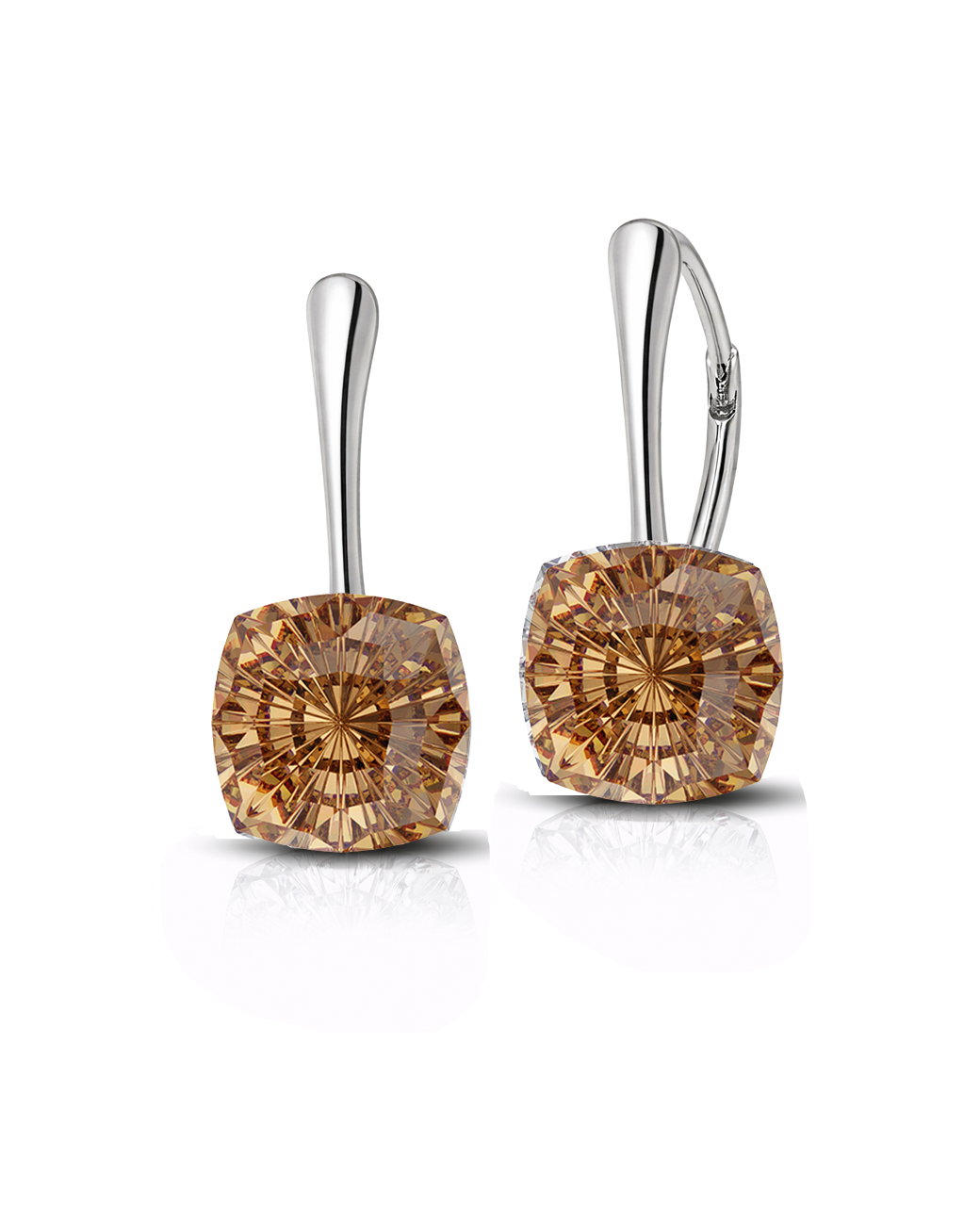 Cerceii tortite leverback Mystic Square Topaz 10 mm sunt realizati cu 2 cristale Swarovski maro-aurii-Topaz de 10 mm fiecare si doua tortite cu inchidere la spate din argint 925. Dimensiunea totala a cercelului este de 20 mm, iar lungimea tortitei cuprinsa intre partea metalica din argint si cristalul Swarovski este de 11 mm.
