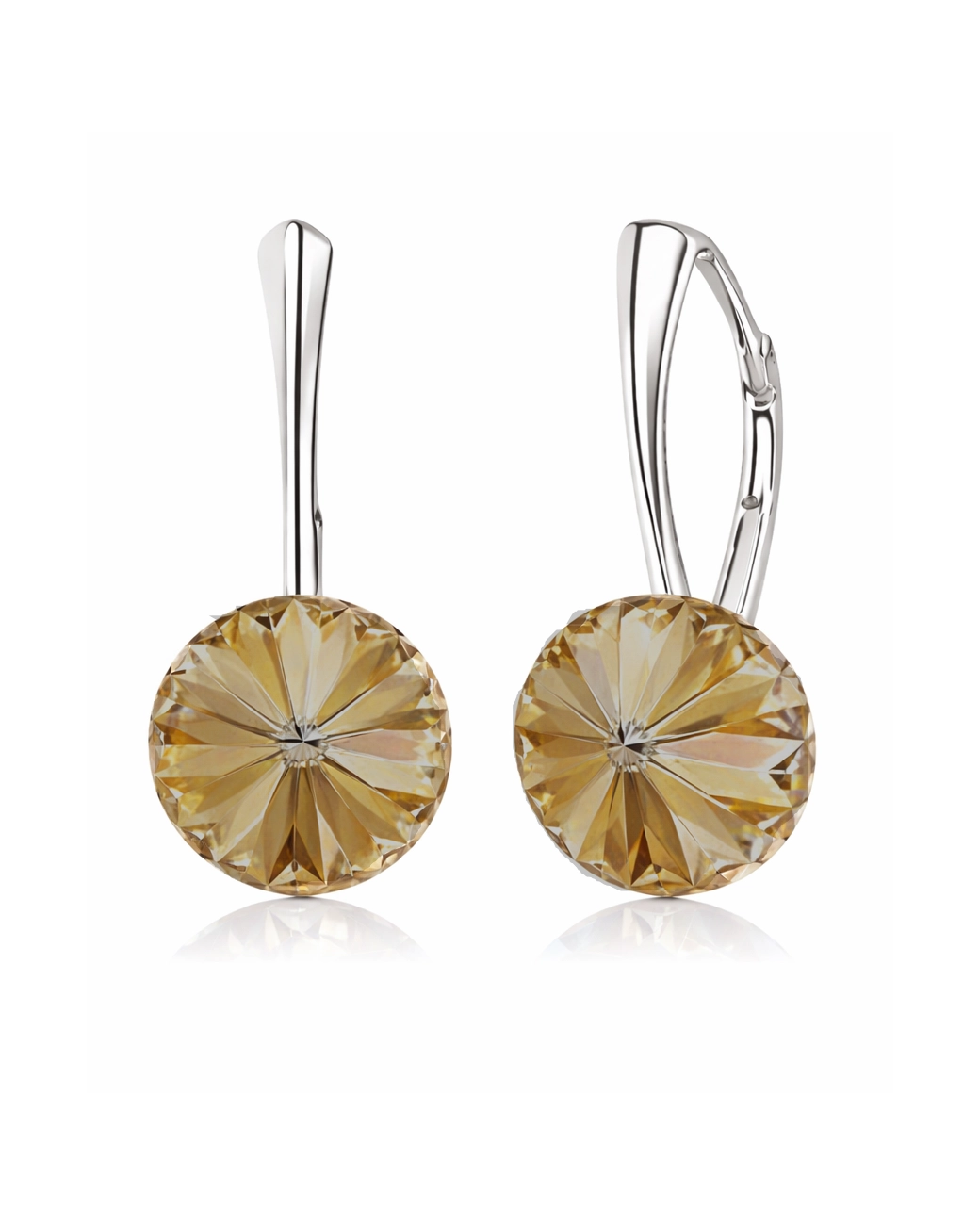 Cerceii tortite leverback Rivoli Golden Shadow 12 mm sunt realizati din tortite de argint 925 si cristale Swarovski rotunde cu diametrul de 12 mm in culoarea Golden Shadow-auriu intens cu umbre .