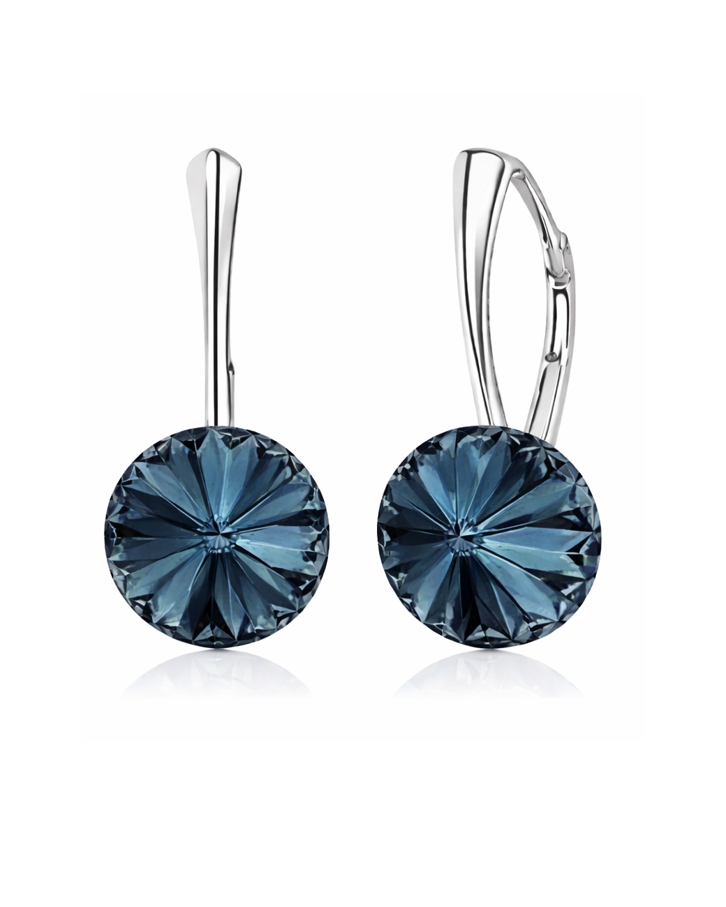 Cerceii tortite leverback Rivoli Montana 12 mm sunt realizati din tortite de argint 925 si cristale Swarovski rotunde cu diametrul de 12 mm in culoarea Montana-nuante de albastru foarte inchis  .