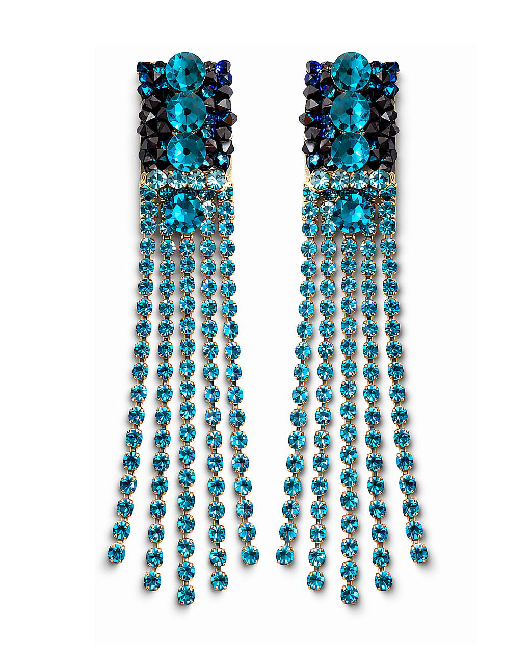 Cristale Swarovski în partea superioară, lanțișor argintiu și lanțișor cu strasuri în nuanțe turcoaz