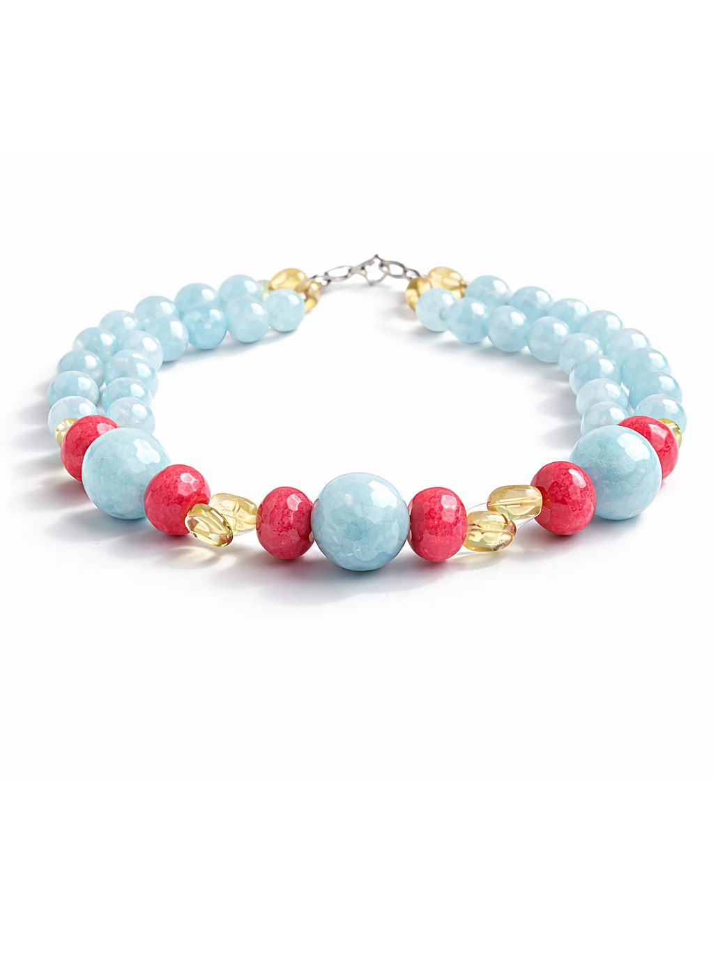 Citrinele contribuie la luminozitatea colierului, cu nuanta lor calda si stralucitoare.