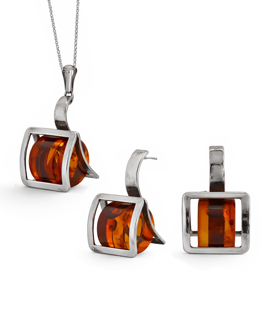 Descopera un set uluitor de bijuterii argint, realizat intr-un captivant format 3D. Acest set elegant contine un pandantiv si cercei mari si sofisticati, conceputi pentru a te impresiona. Fiecare piesa este meticulos lucrata si incrustata cu o piatra de chihlimbar de forma cilindrica, cu un design taiat in 3D, conferindu-le un aspect unic si adancime. Culoarea chihlimbarului aminteste de nuanta calda a mierii, emanand o aura de caldura si rafinament. Acest set de bijuterii straluceste datorita designului sau modern si extravagant, perfect pentru cei care cauta originalitate si eleganta in accesorii.