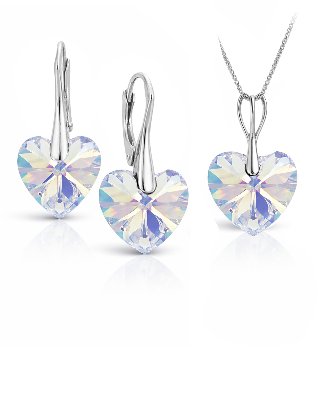 Set lantisor si cercei argint Inima Cristal Aurora Borealis
